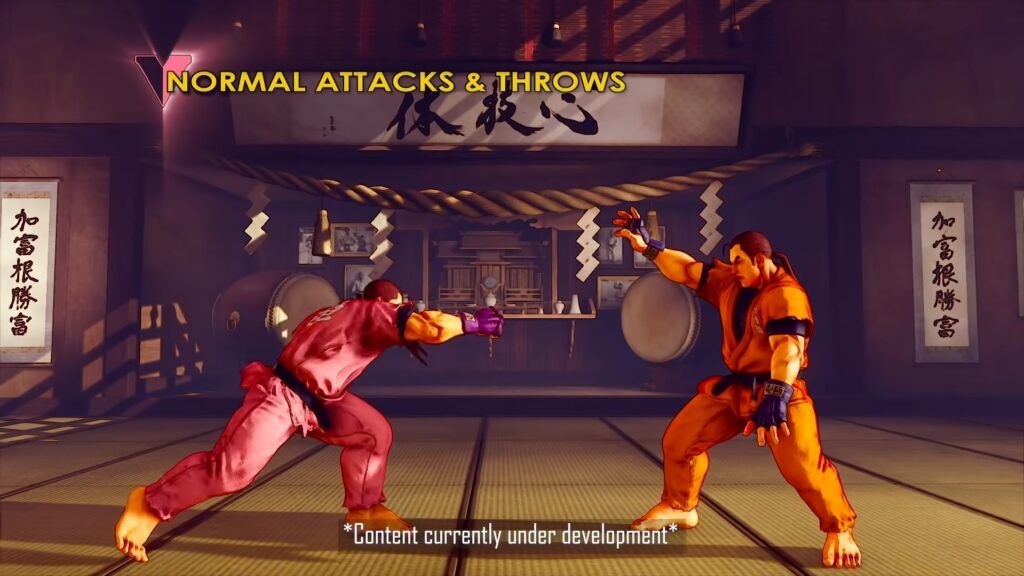 For Street Fighter V, he has a new move called “Danretsuke,” which unleashes a flurry of strikes that knock opponents down. If players use the ex version of this attack, it will launch opponents into the air, and can also be utilized for juggle combos.