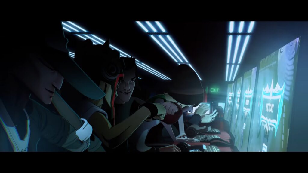 The second verse is then accompanied by the best scene in the music video. Here we see two teams of five compete against each other on Summoner’s Rift on opposite sides of the table, a perfect reflection of the 90s LAN gaming culture.