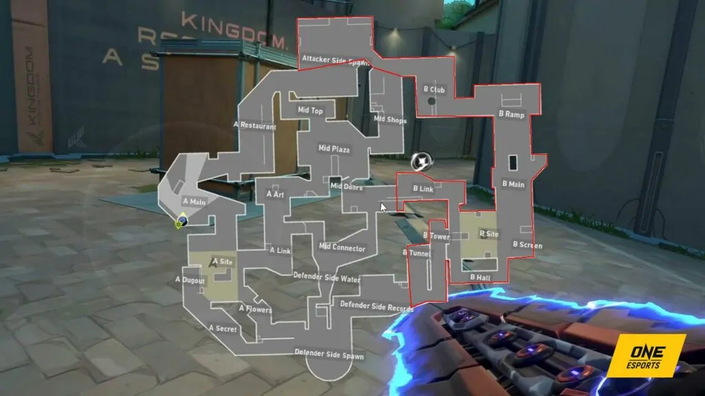 The first thing you need to keep in mind is that the map is split into three lanes: attacker side, mid, and B side. The A side and middle portion of the map have plenty of tight corners, while the B side of the map has a wide and open lane from B Ramp to B Screen.