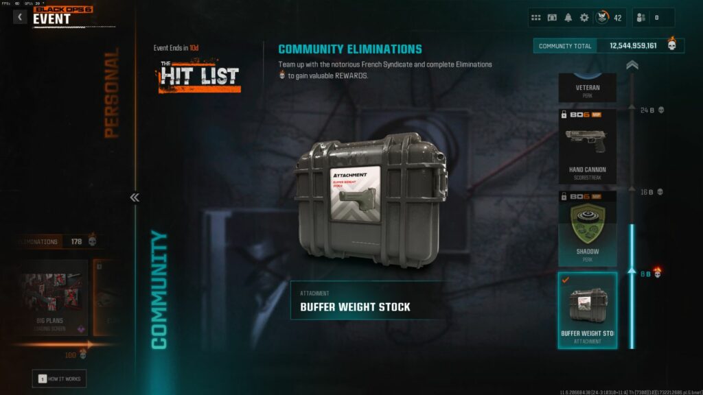 This stock is part of the The Hit List limited-time event in BO6 and WZ, requiring the community to collectively achieve an astounding eight billion eliminations to unlock it.