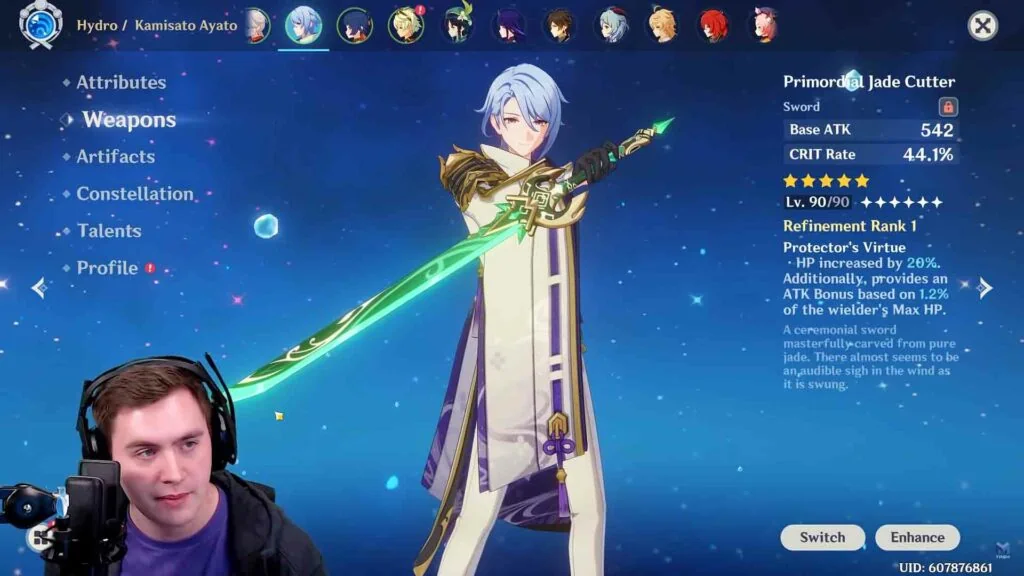 The content creator gave Ayato extra points for having a flashy elemental skill. When using Kyouka, Ayato deals lightning-fast Hydro slashes that leave faint images of himself while in combat.