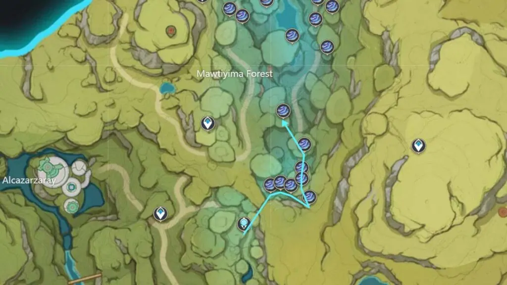 Locations and routes of Collei materials for Character Ascension
