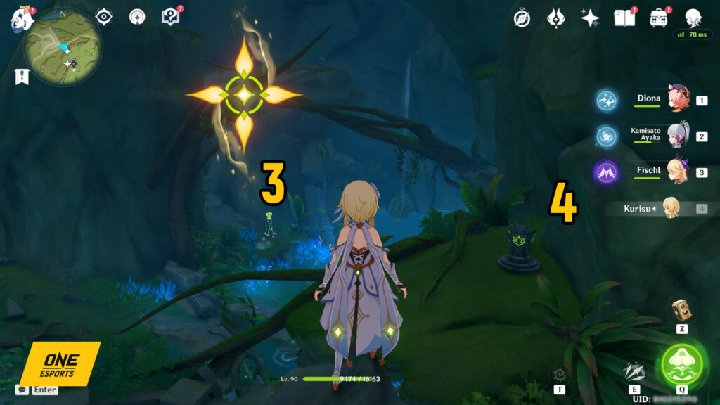 - Using a Dendro character, activate all four Dendro totems in this area as shown in the screenshots.