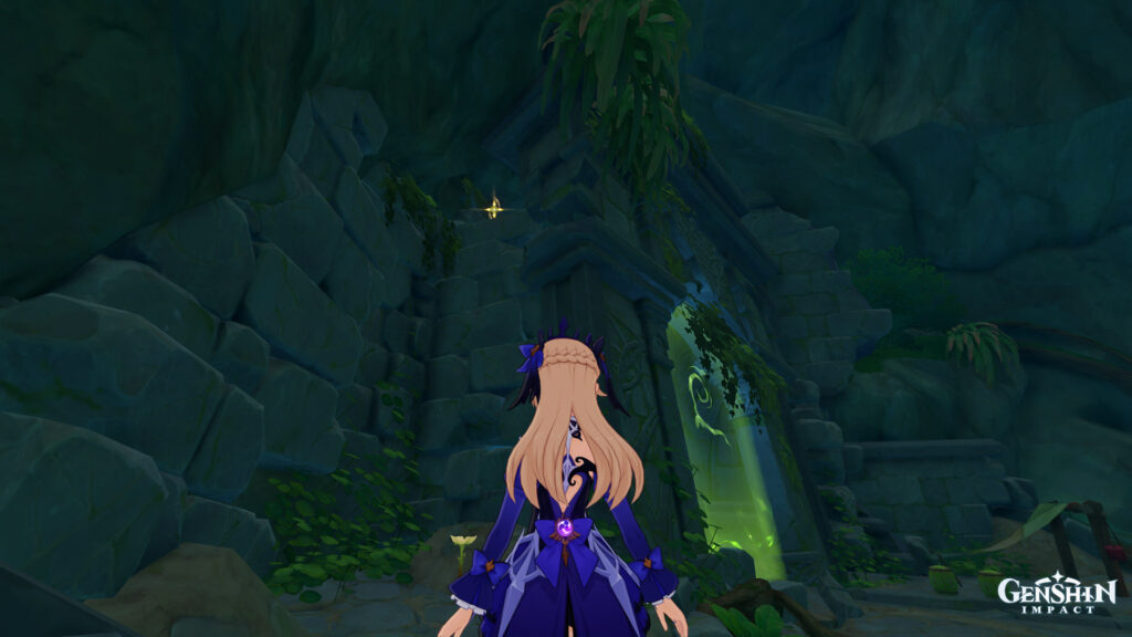 Once you’ve unlocked both cube mechanisms, all water will be drained out of the cave and you can finally unlock the teleport waypoint, located towards the direction of the Dendro totem with a Mist Flower beside it.
