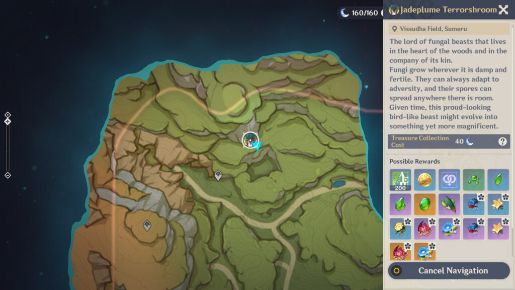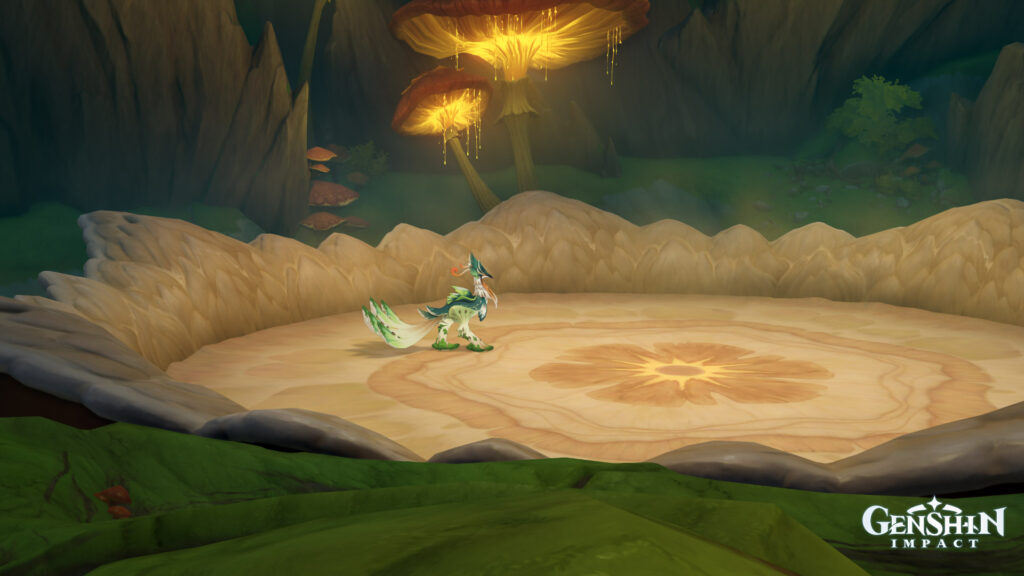It’s a lovely day. Here we see Sumeru’s new boss, Jadeplume Terrorshroom, in its natural habitat. From afar, the mighty fungal beast looks terrifying with its sharp talons and gigantic tail.