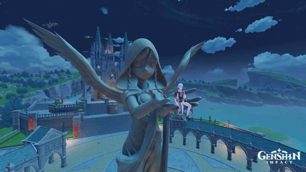 If you want to watch the clouds before your next quest, you can actually take a seat in the hands of the statue. This will also unlock the Beloved of the Anemo Archon achievement, a thoughtful reference to Anemo Archon Barbatos and his godly command over the nation.